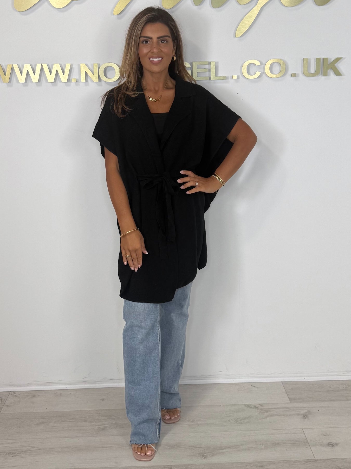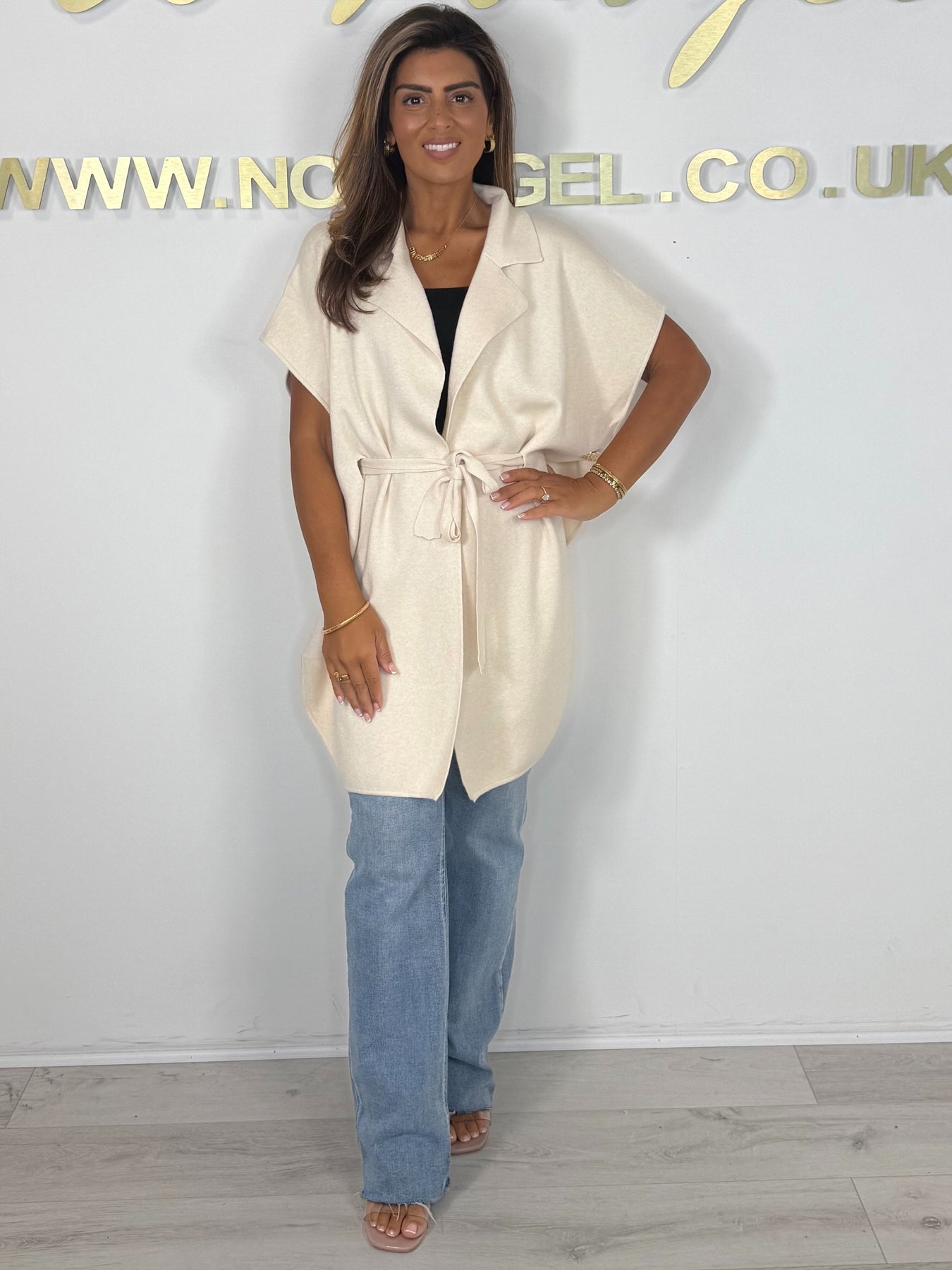 Tie Up Collared Hammered Gold Button Detail Poncho