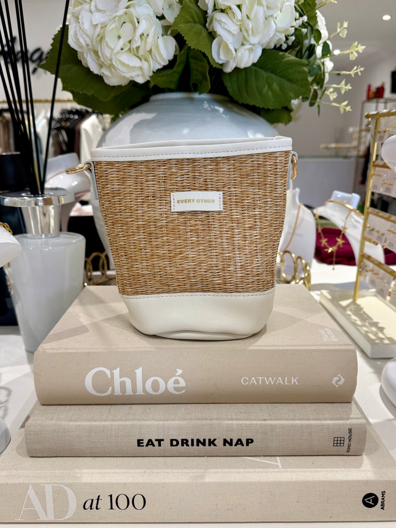 Straw Bucket Drawstring Bag