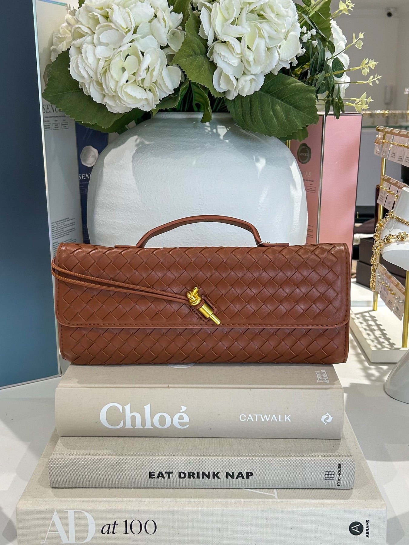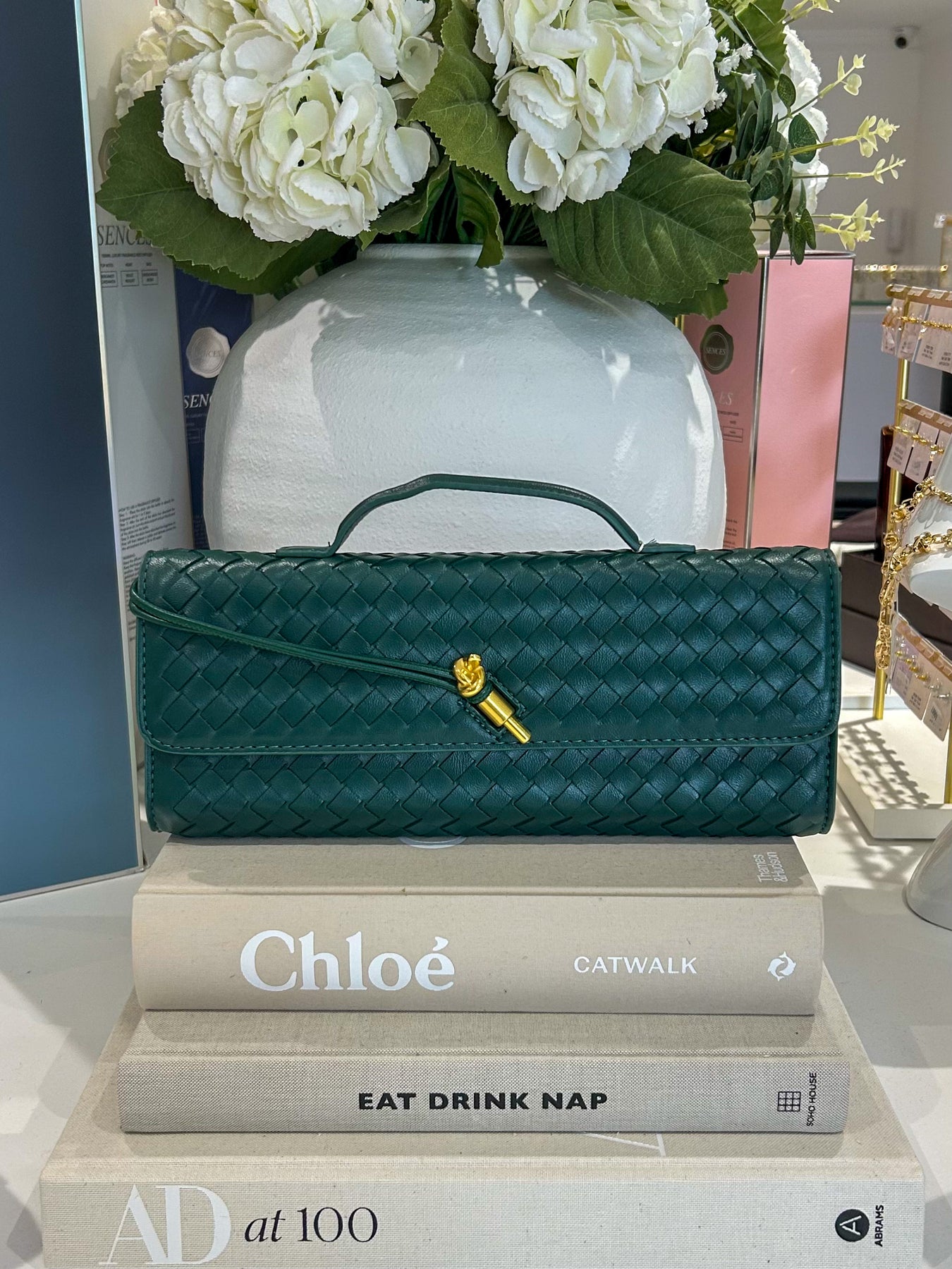 Woven Rectangle Envelope Gold Rod Fasten Clutch Bag (13 Colours)