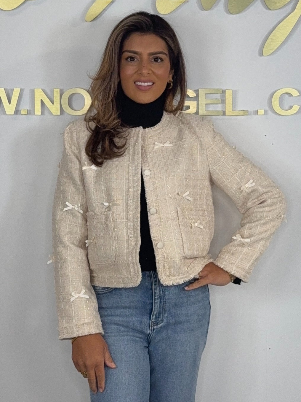 Cream Bow Detail Shimmer Fleck Blazer
