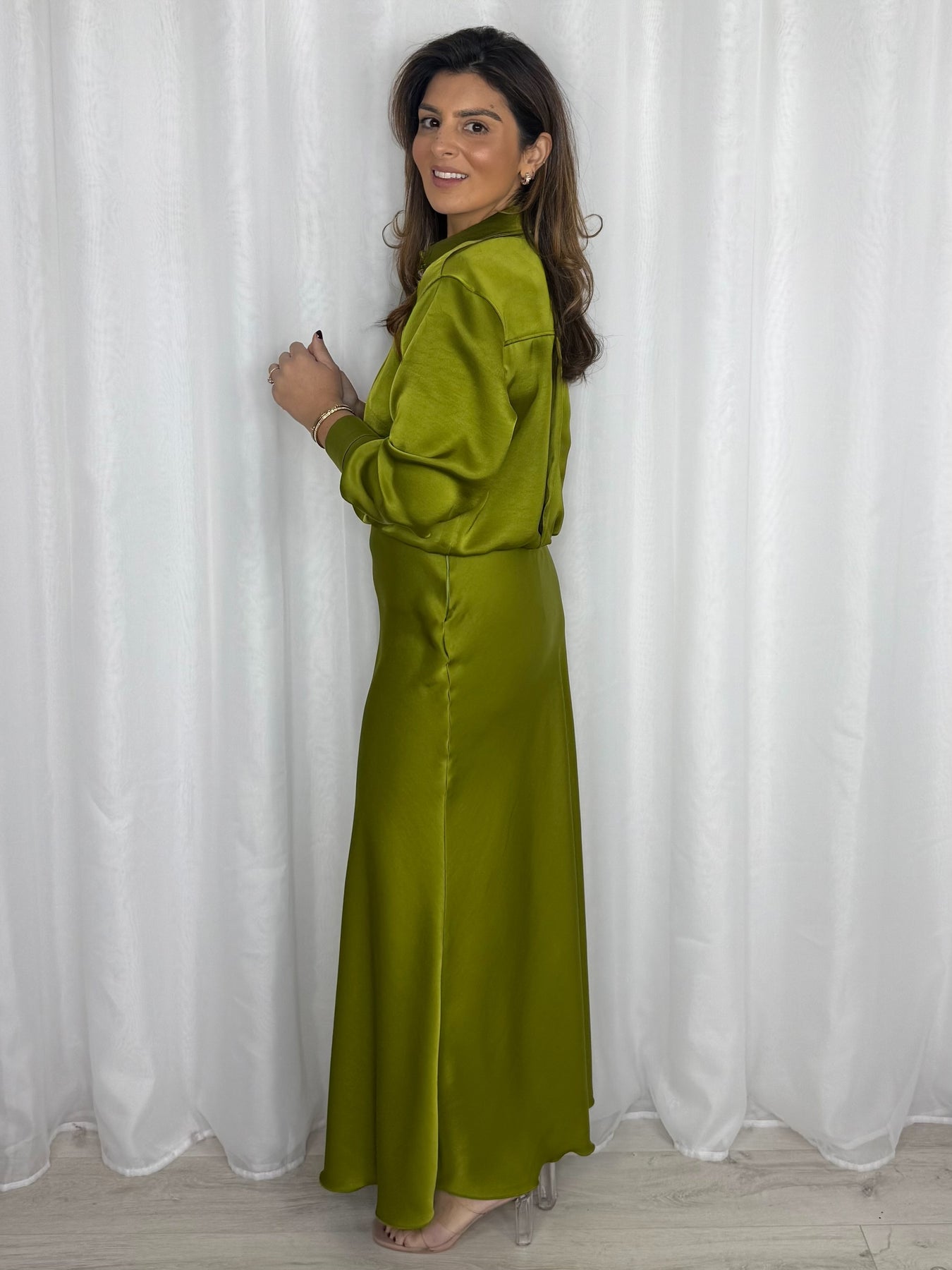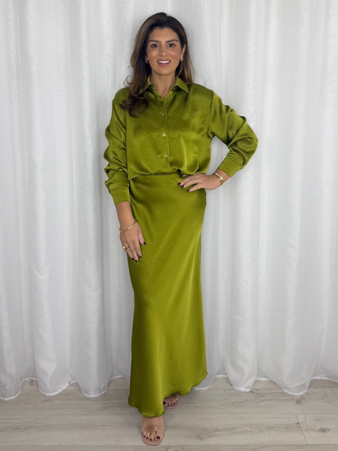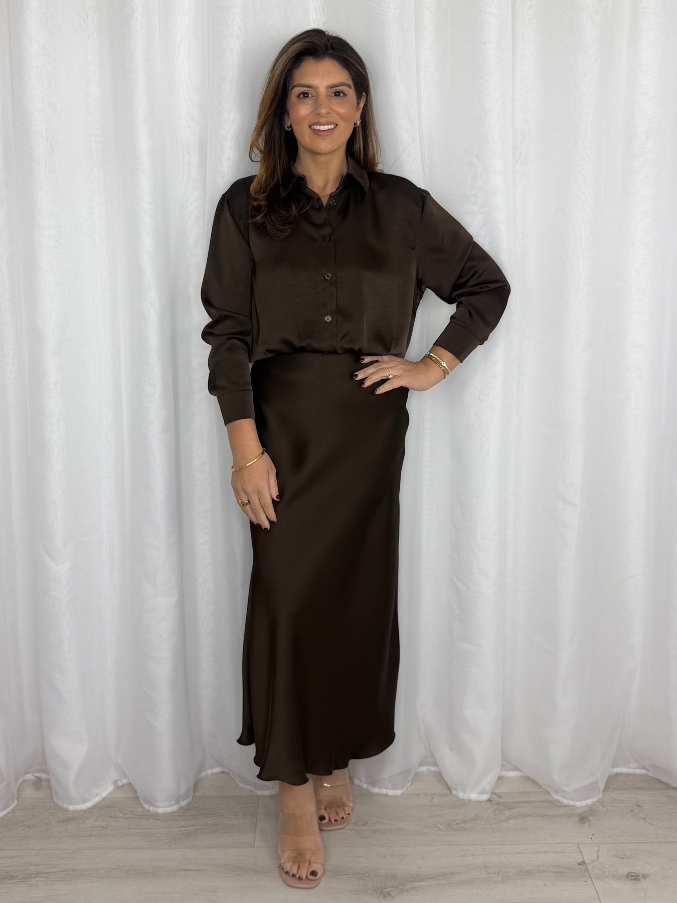 Silk Collared Shirt & Maxi Skirt Co-Ord (5 Colours)