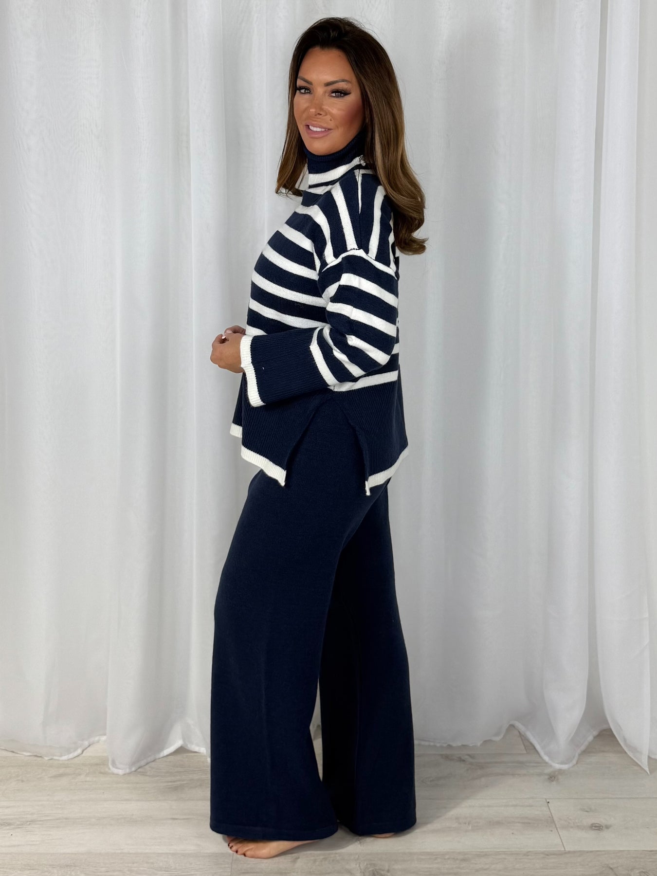Stripe Pattern Roll Neck Straight Leg Co-Ord