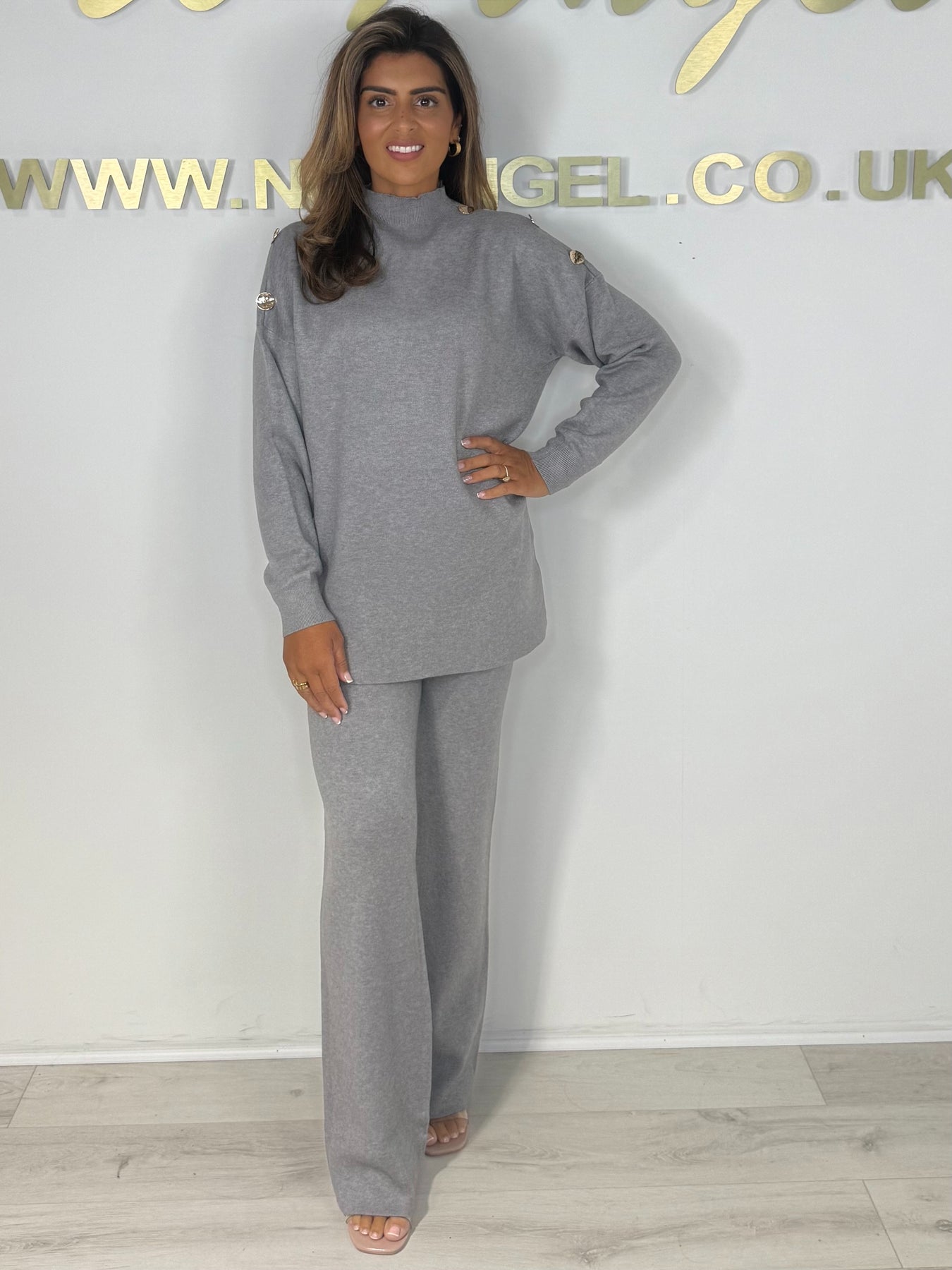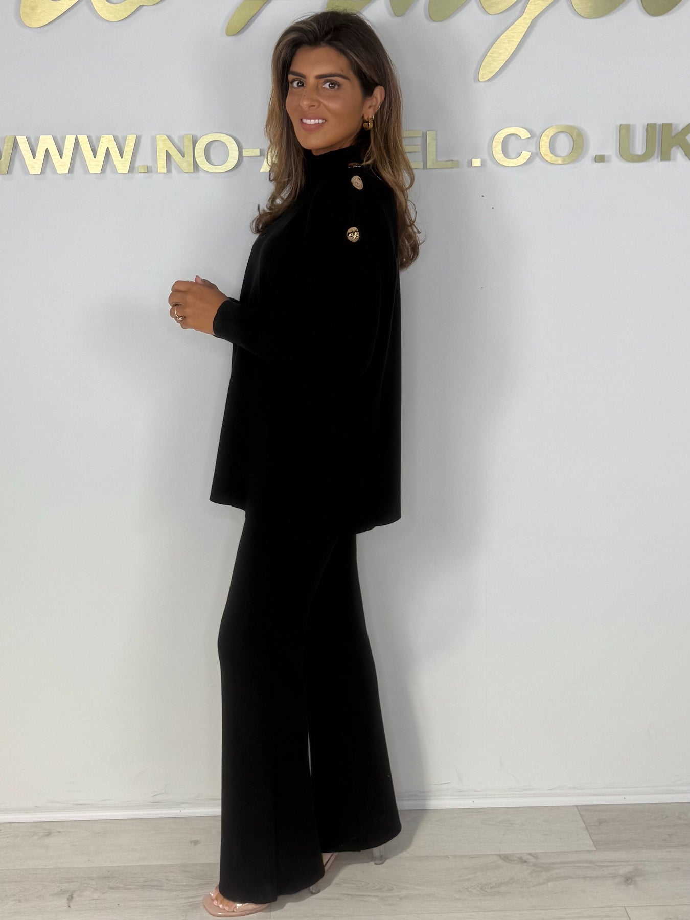 Turtle Neck Soft Knit Hammered Gold Button Trouser Co-ord (3 Colours)
