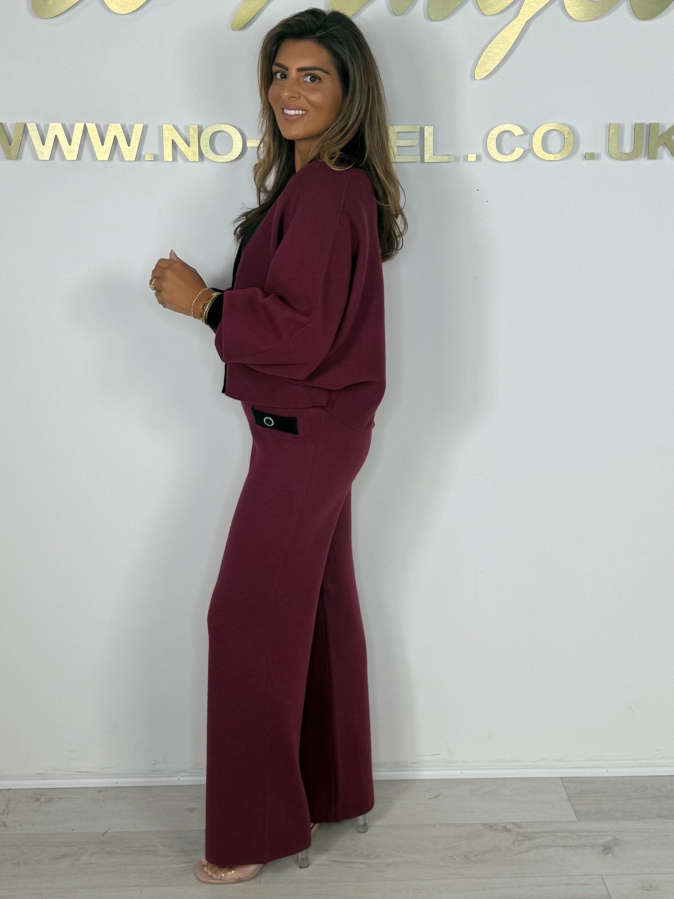 V-Neck Balloon Sleeve Pearl Look Button Detail Trouser Co-ord