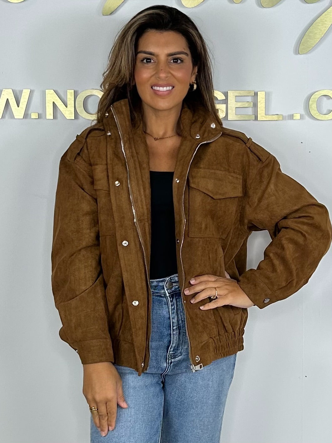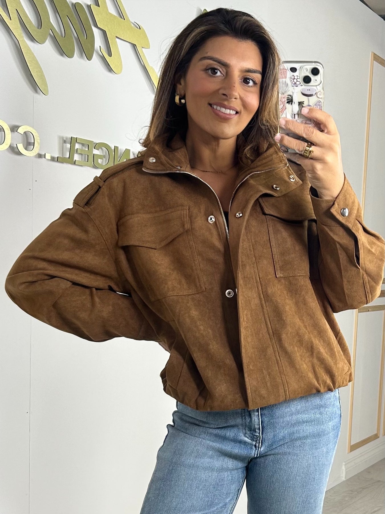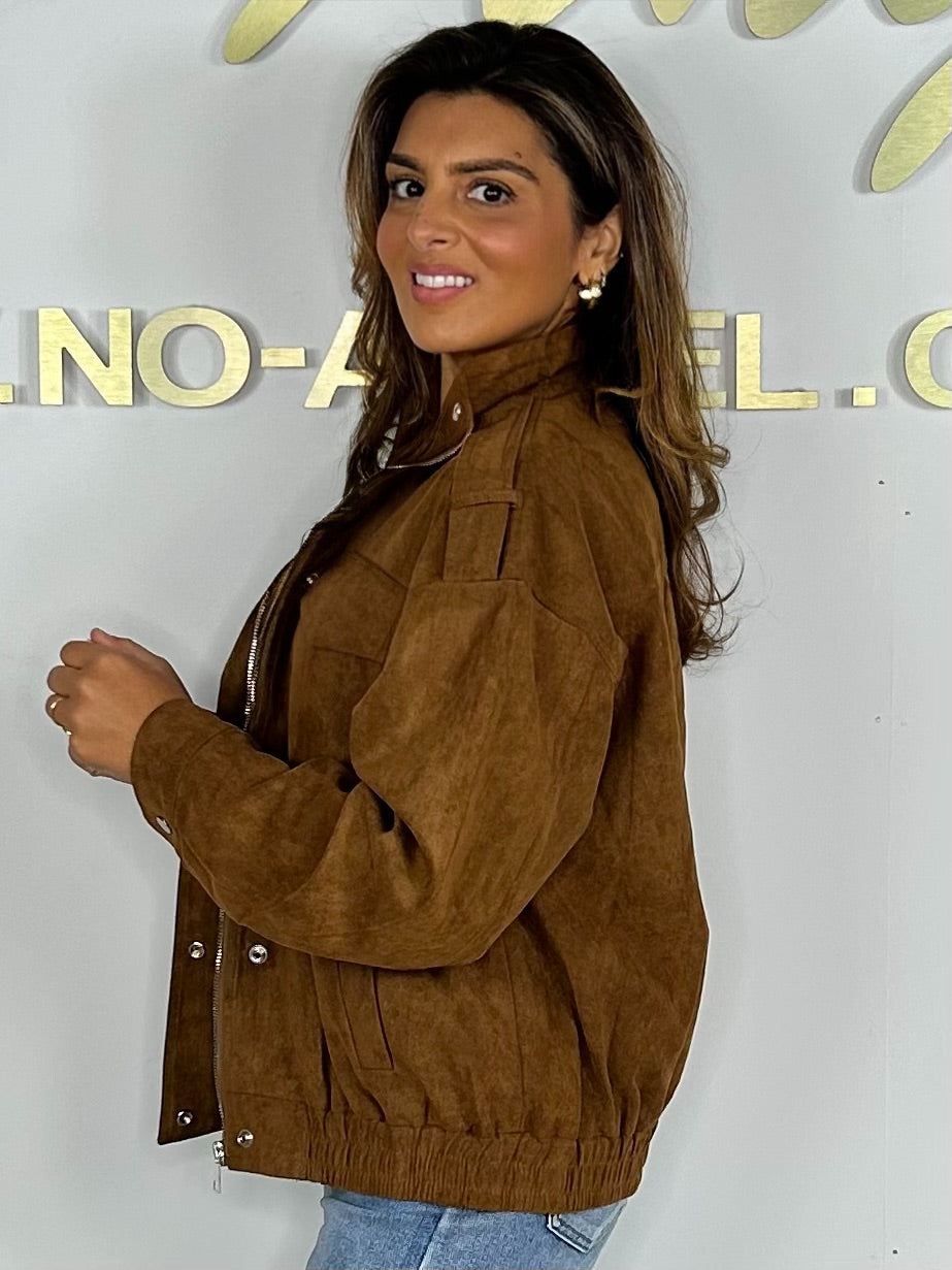 Camel Suedette Zip Up Pocket Detail Jacket
