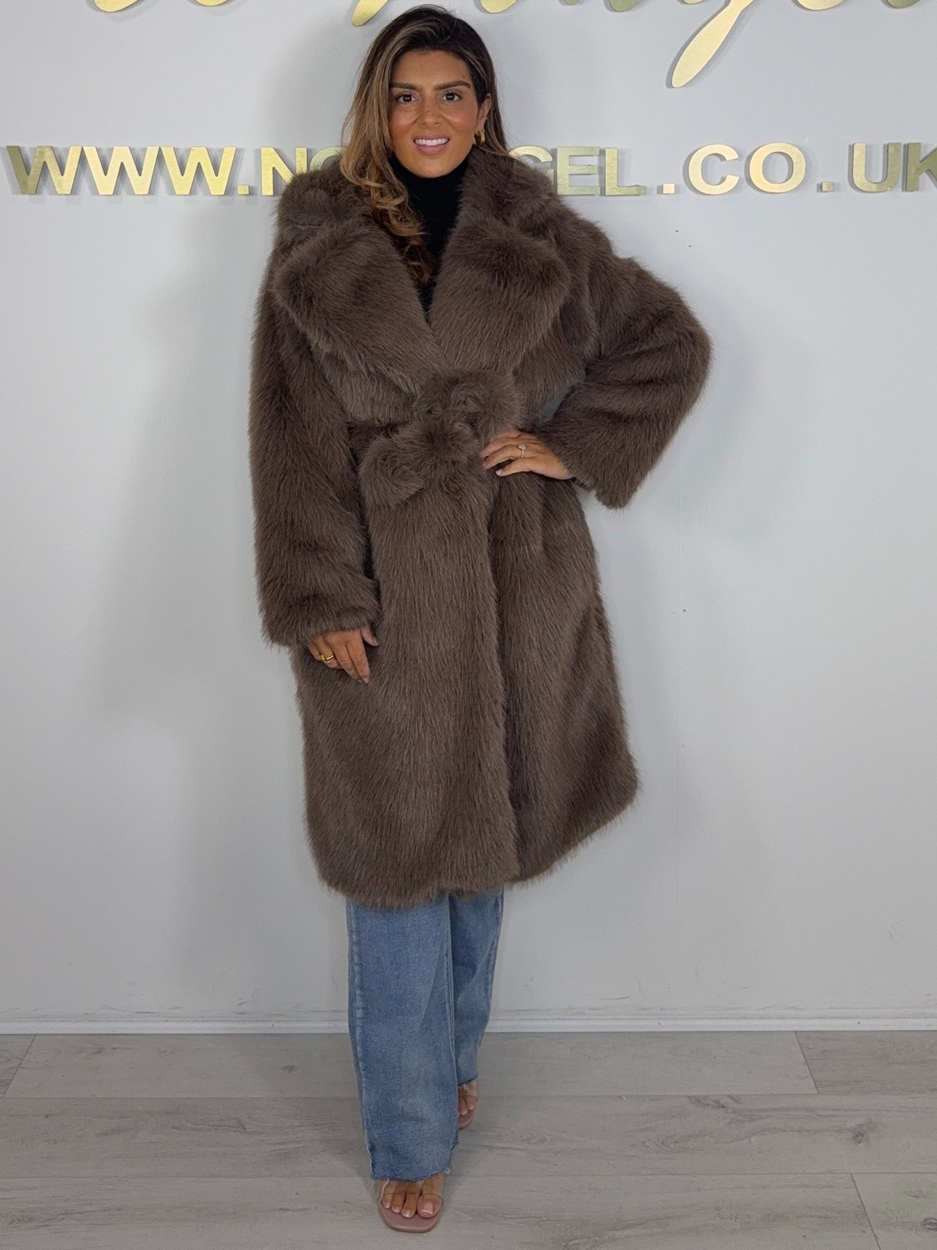 Faux Fur Collared Belted Longline Coat (3 Colours)