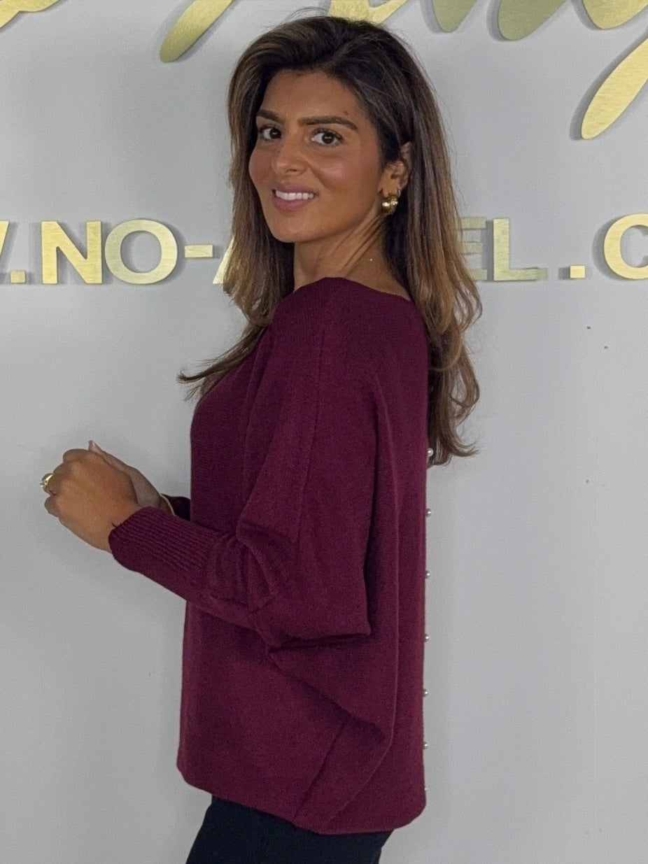 Scoop Neck Batwing Soft Knit Pearl Back Jumper (4 Colours)