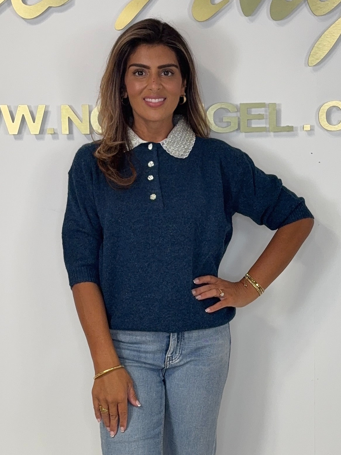 Short Sleeve Diamante Collared Knit Jumper (7 Colours)