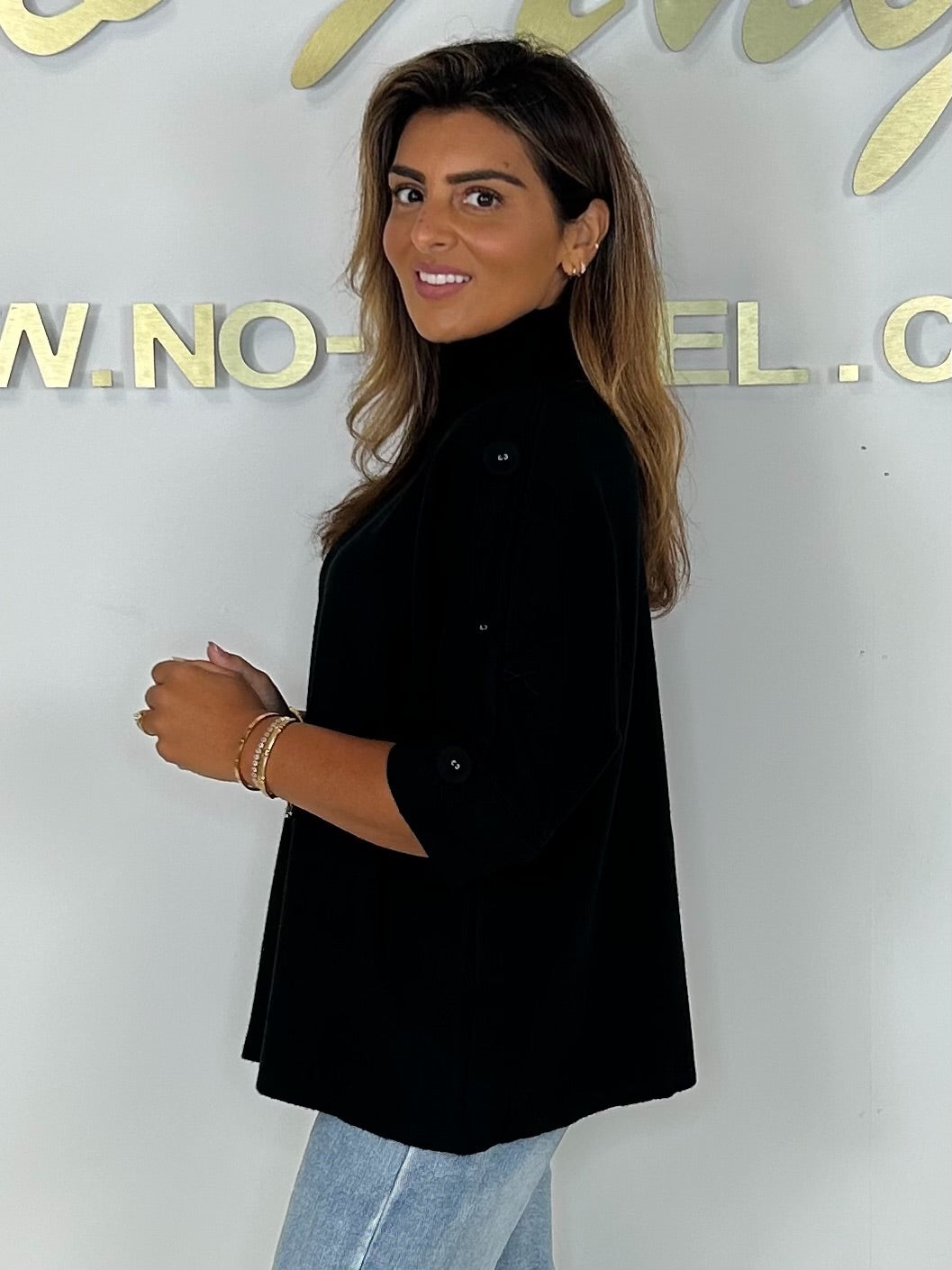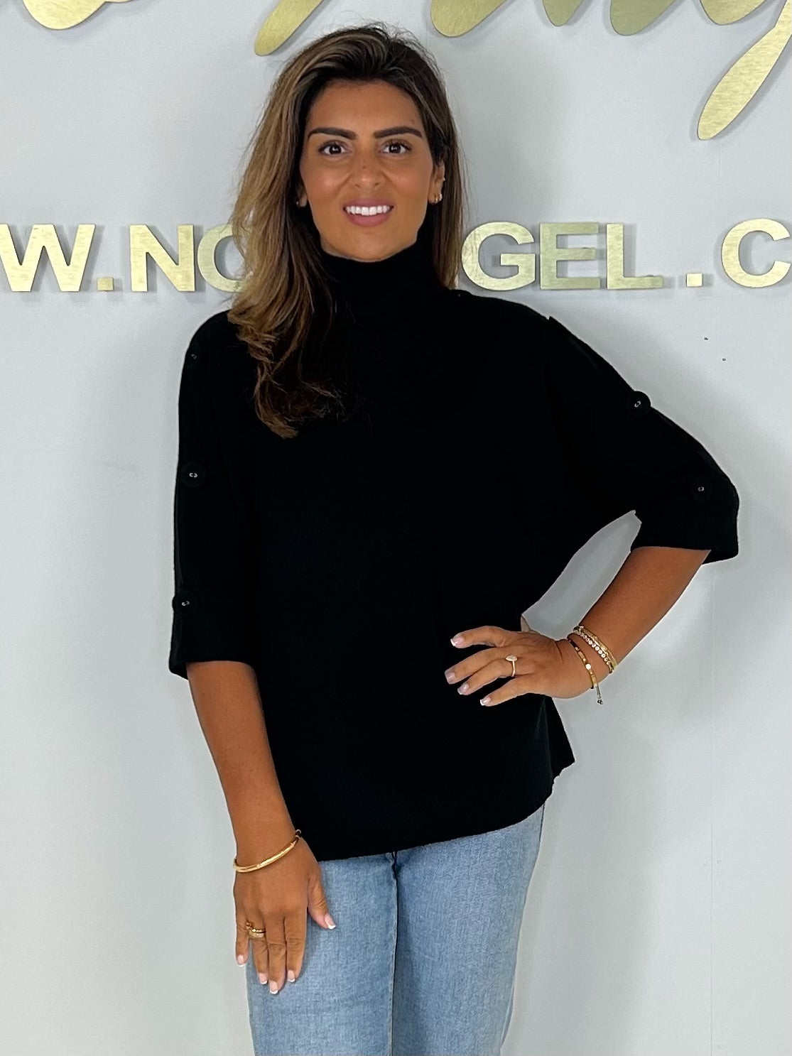 Soft Knit High Neck Button Sleeve Jumper (6 Colours)