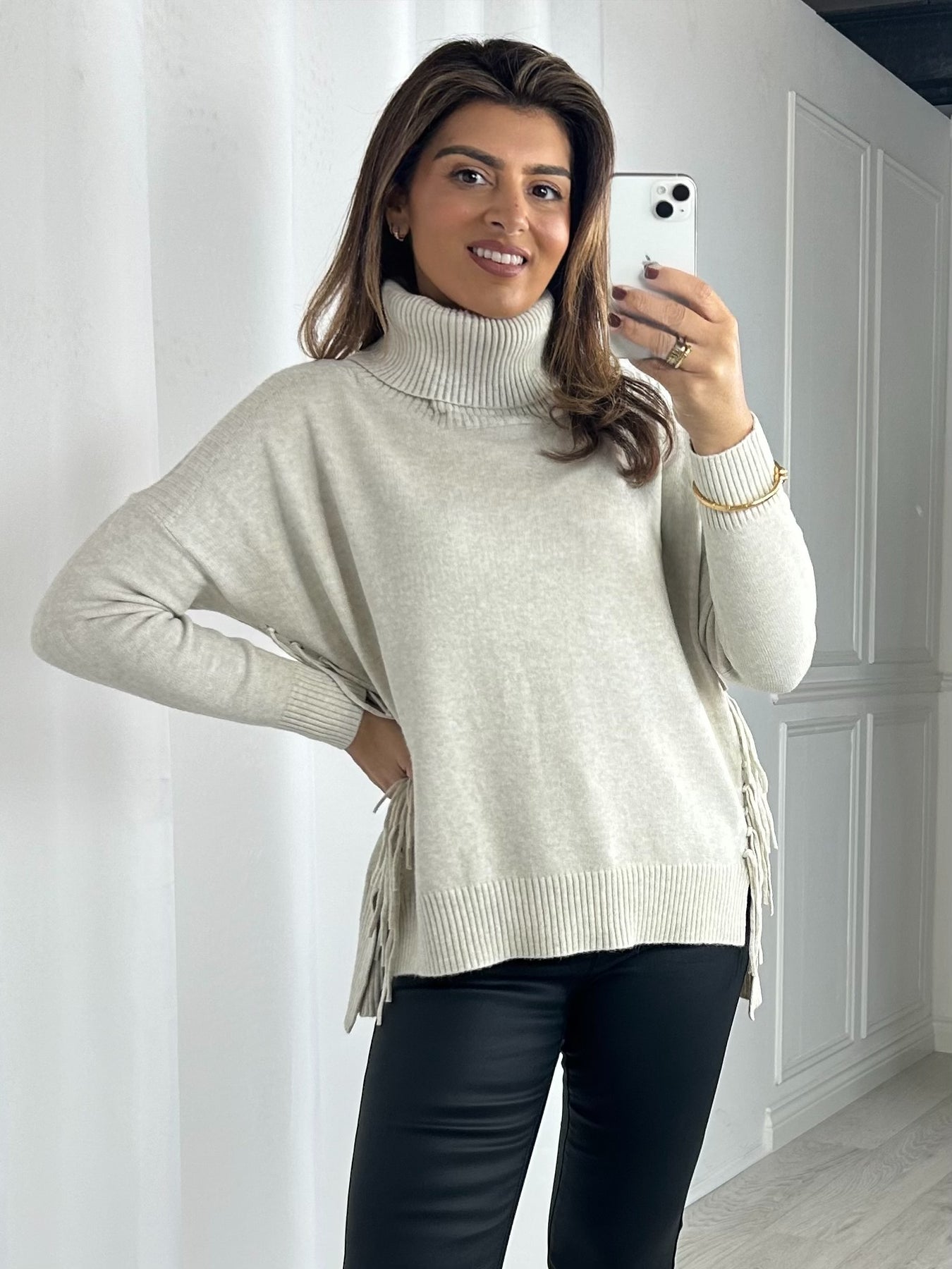 Soft Knit Roll Neck Tassel Side Jumper (5 Colours)
