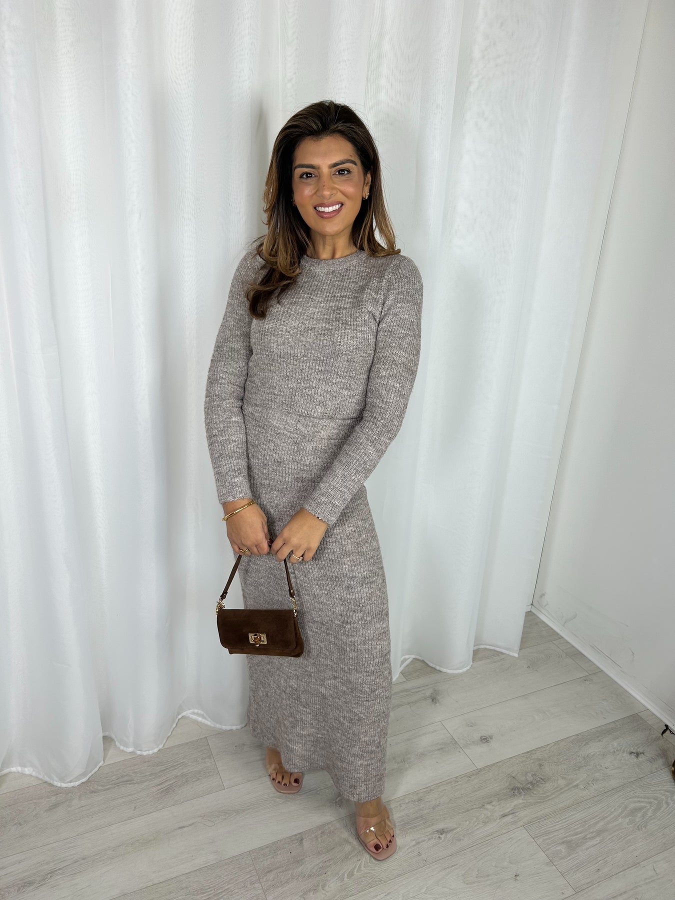 Taupe Cropped Knitted Jumper & Maxi Skirt Co-Ord