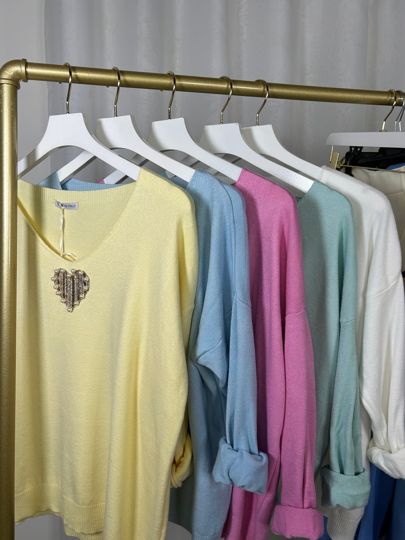 V-Neck Soft Knit Pearl Heart Detail Jumper (5 Colours)
