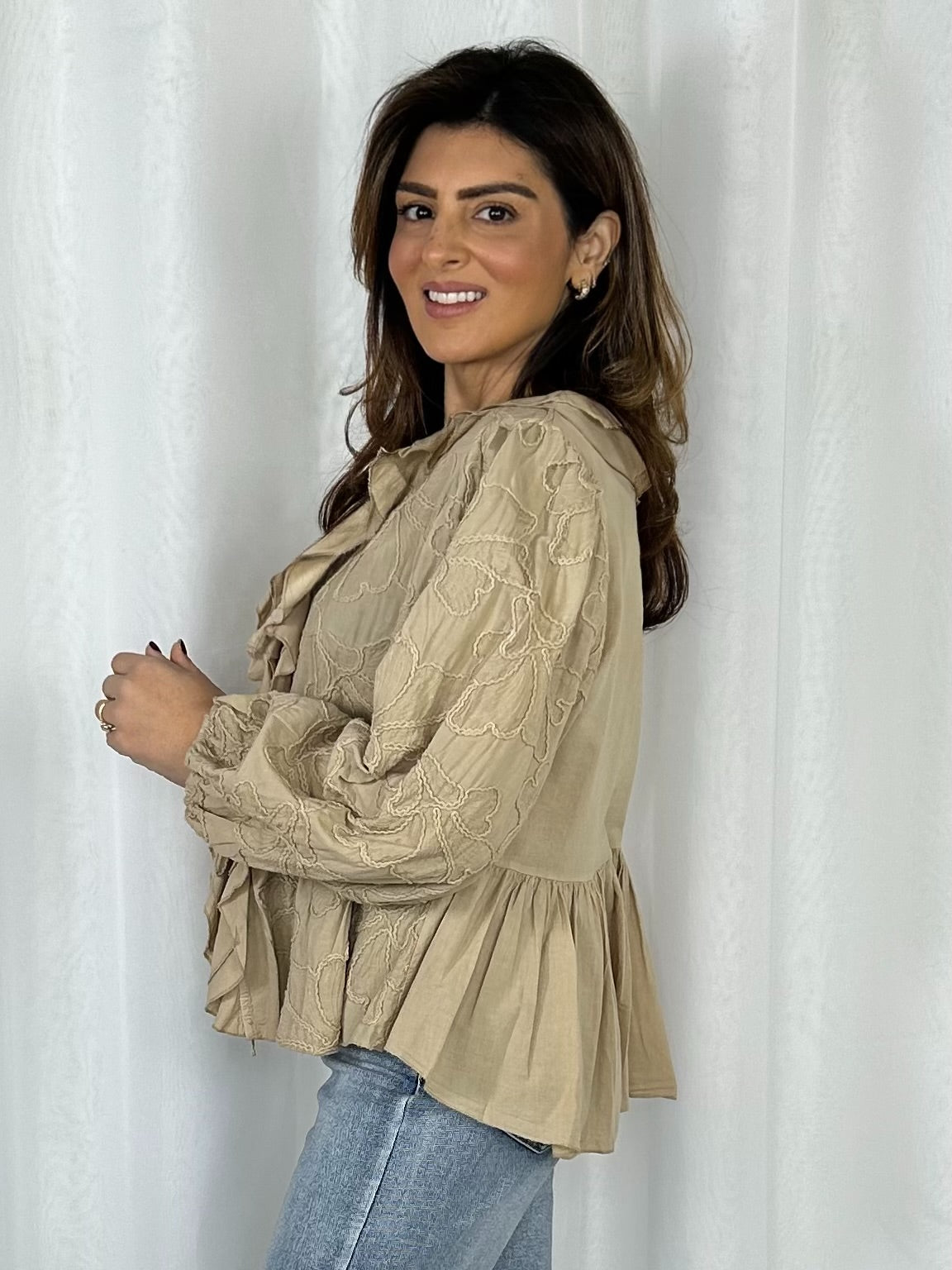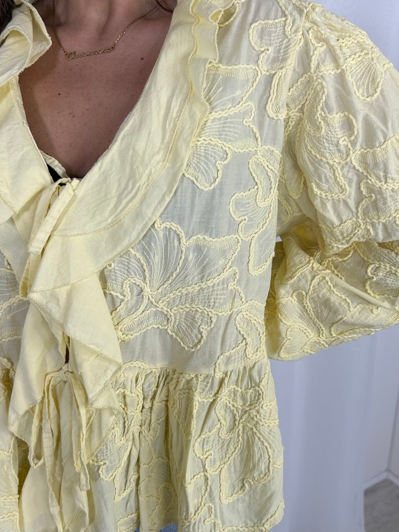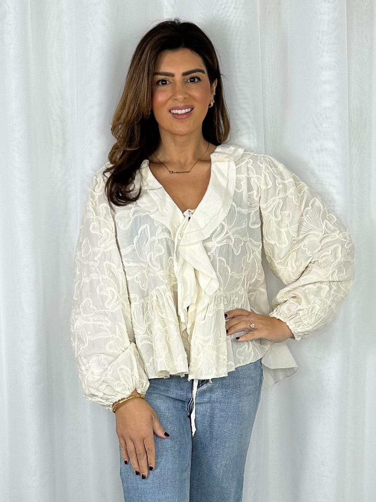 Balloon Sleeve Tie Front Ruffle Flower Print Shirt (4 Colours)