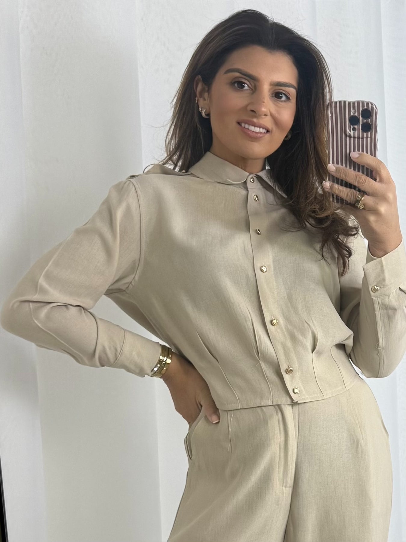 Lightweight Gold Button Collared Cinched Trouser Co-ord