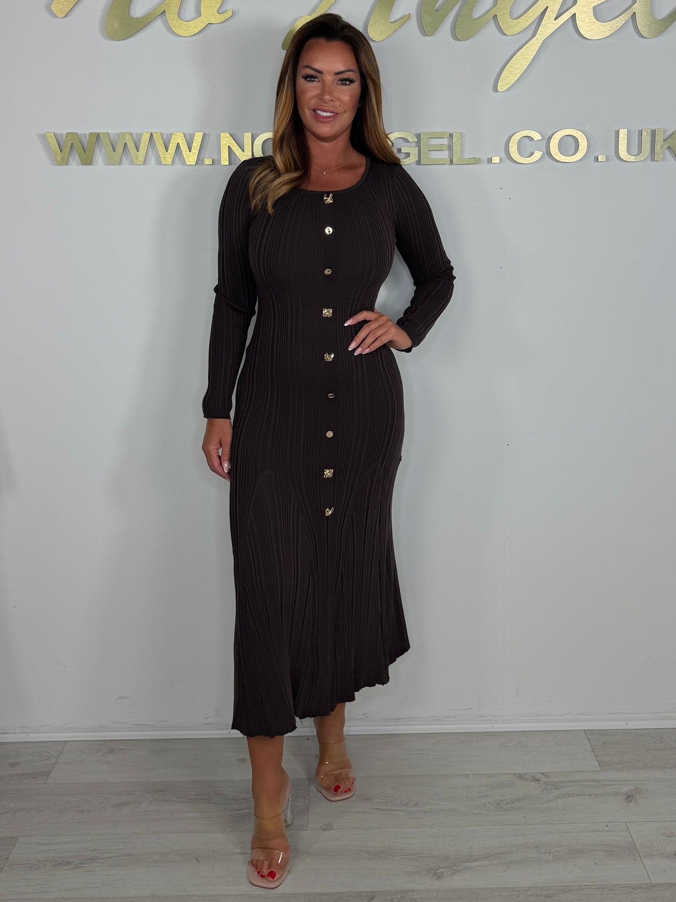 Long Sleeve Textured Gold Button Ribbed Maxi Dress (4 Colours)