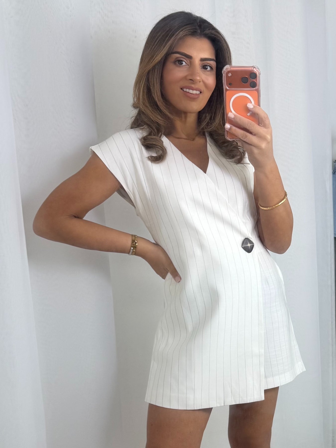 White Pinstripe Single Breasted Playsuit