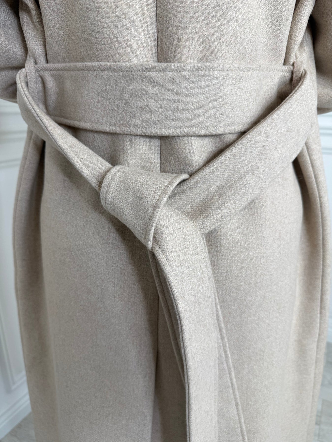 Featuring a classic lapel collar, self-tie waist belt, and sleek longline design, this coat creates a flattering, feminine shape while maintaining a modern, minimalist aesthetic. The tab detail cuffs and side pockets add subtle detailing and functionality, making it as practical as it is stylish.