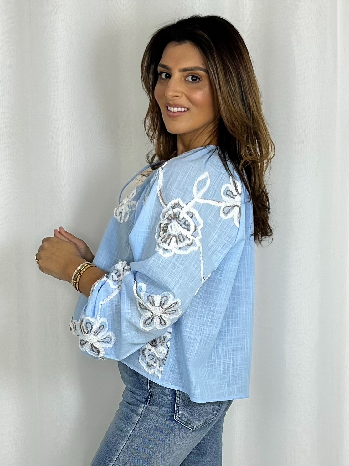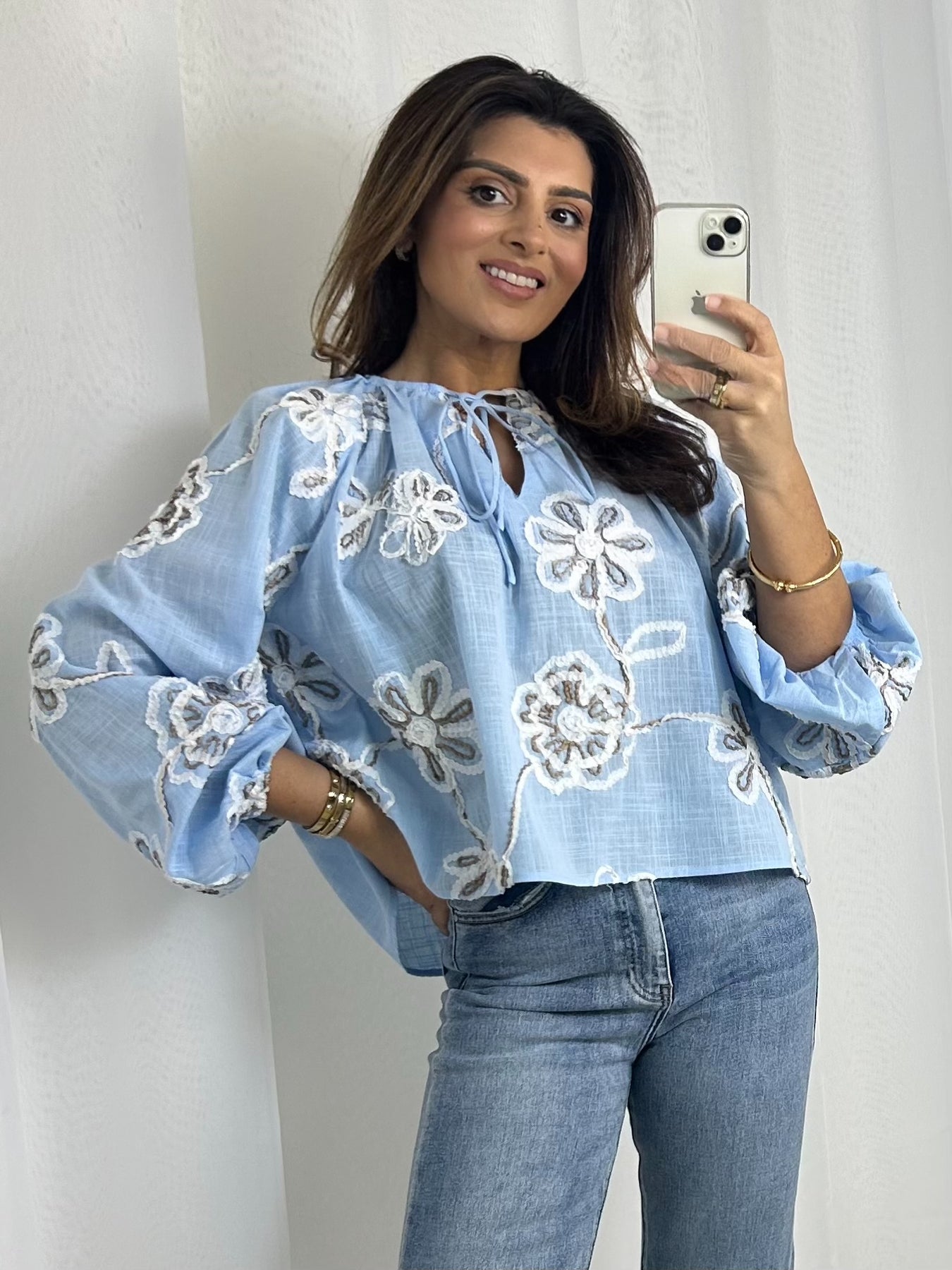 Flower Embroidered Smock Top