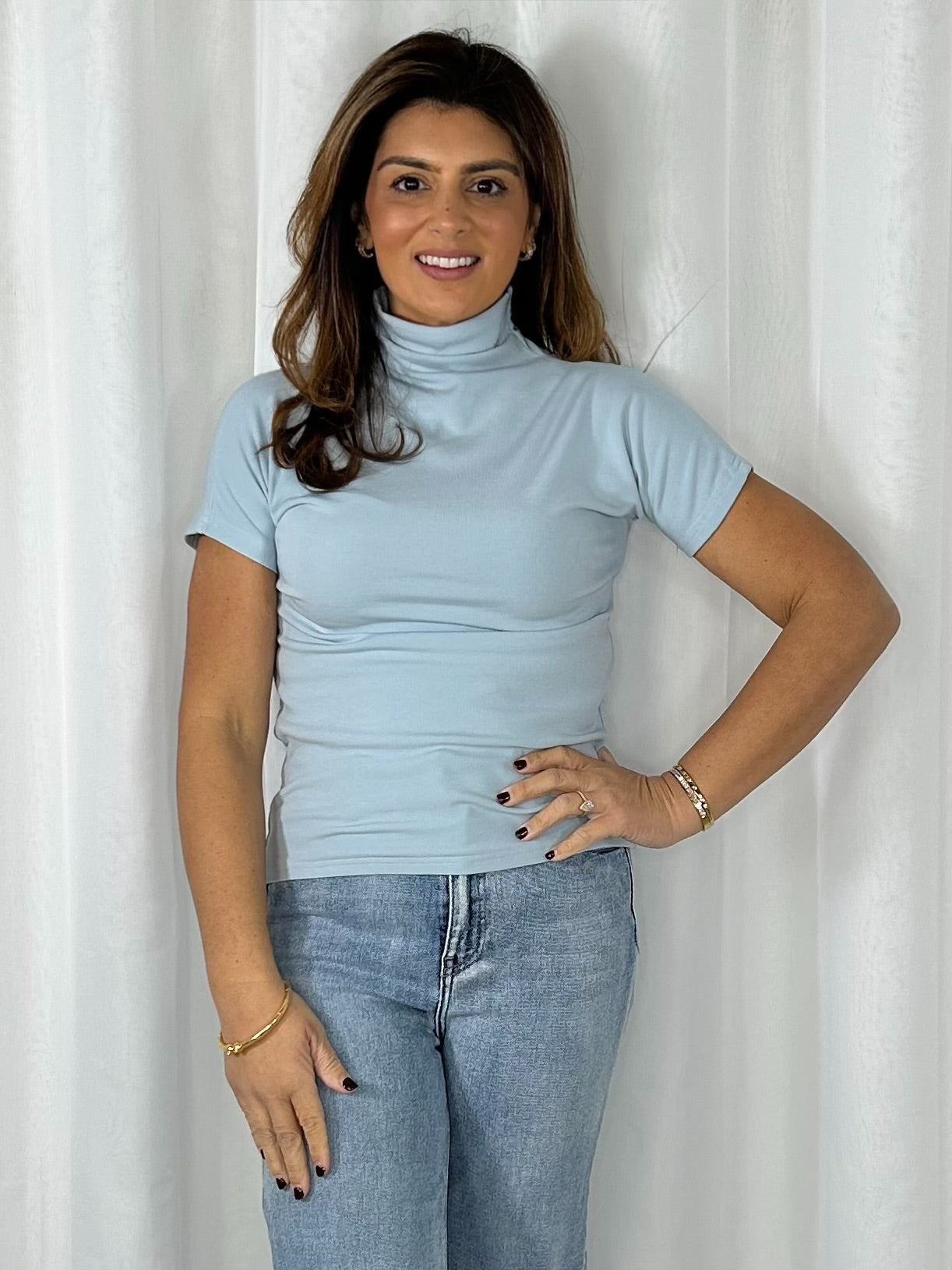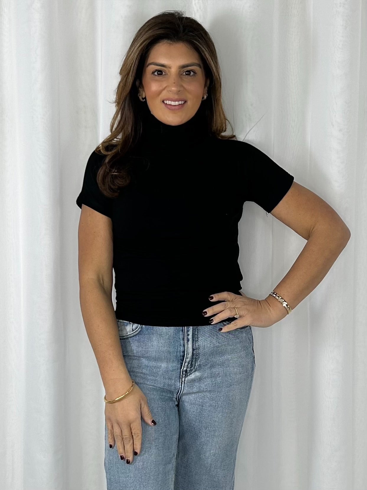 Turtle Neck Short Sleeve Basic Top