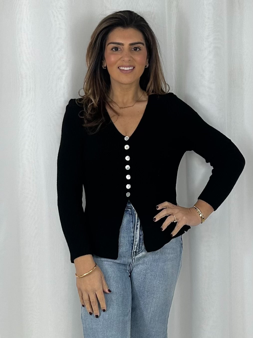 V-Neck Long Sleeve Button Up Cardigan