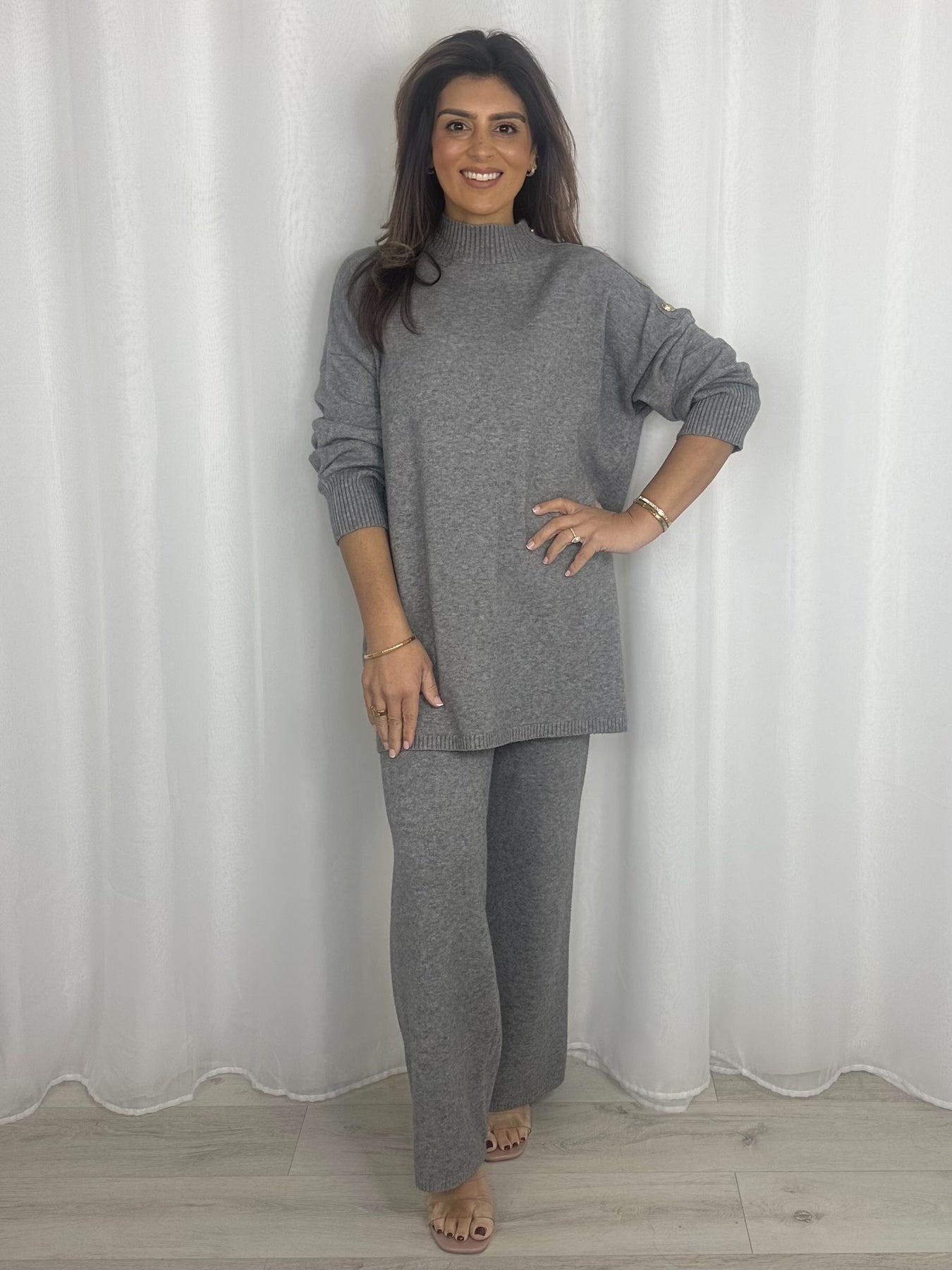 Longline Turtle Neck Gold Button Trouser Co-ord (5 Colours)