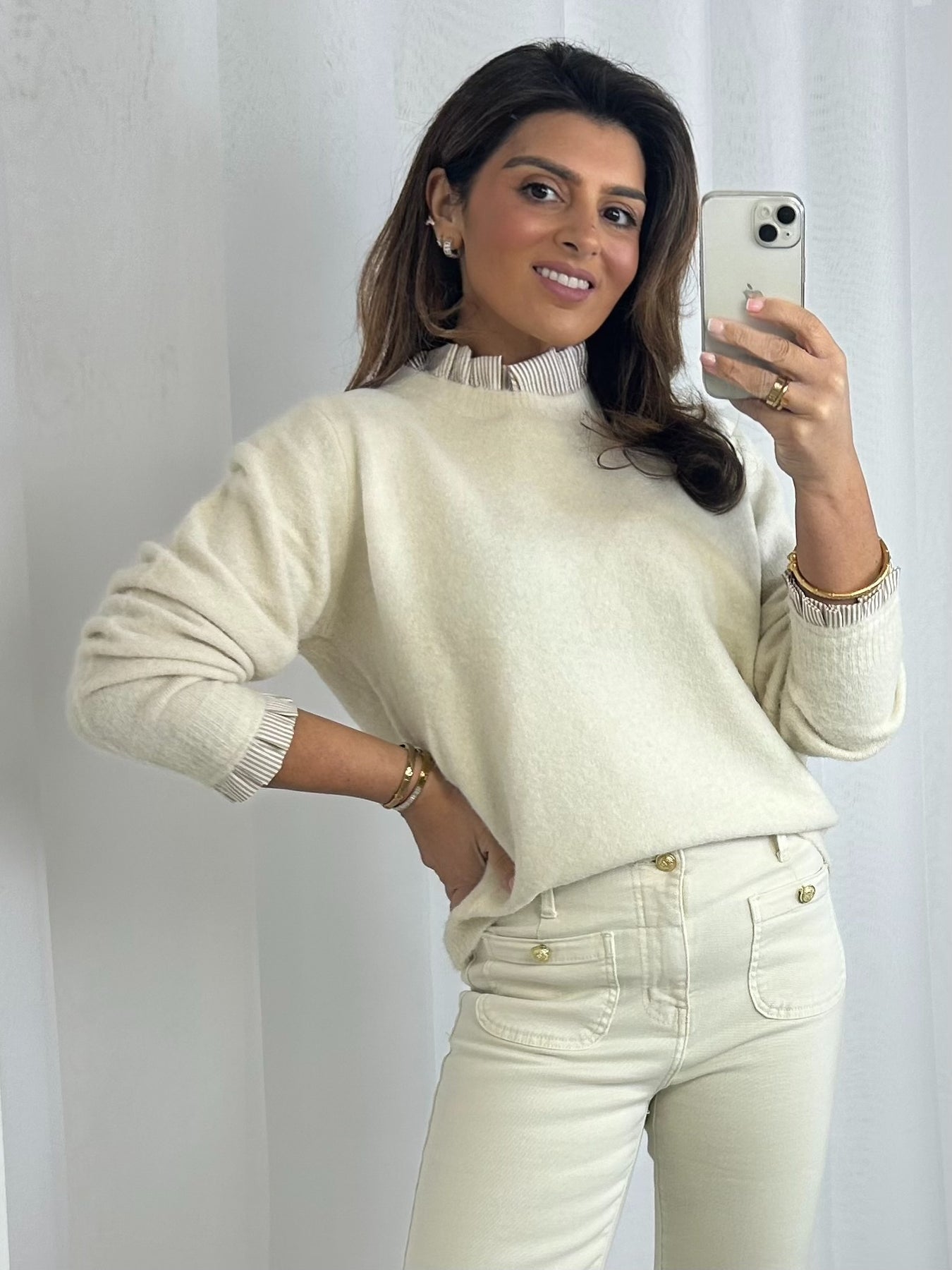 Pinstripe Frill Trim Fluffy Knit Jumper