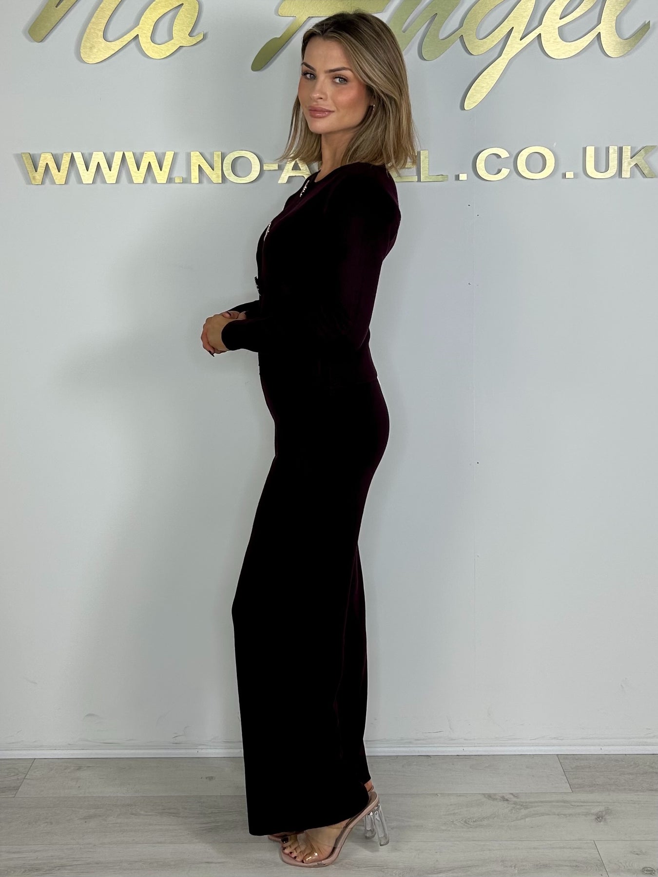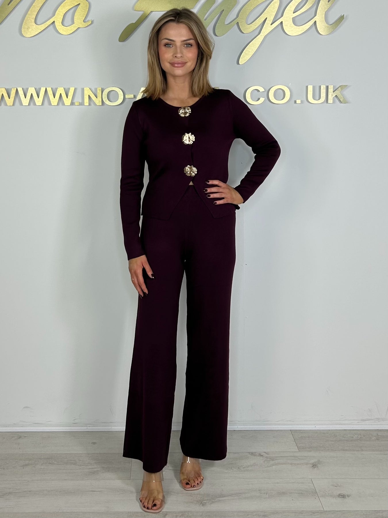 Plum Gold Clover Hardware Detail Long Sleeve Knit Co-Ord