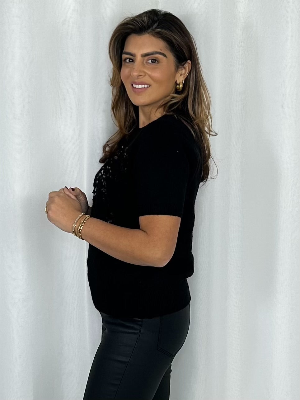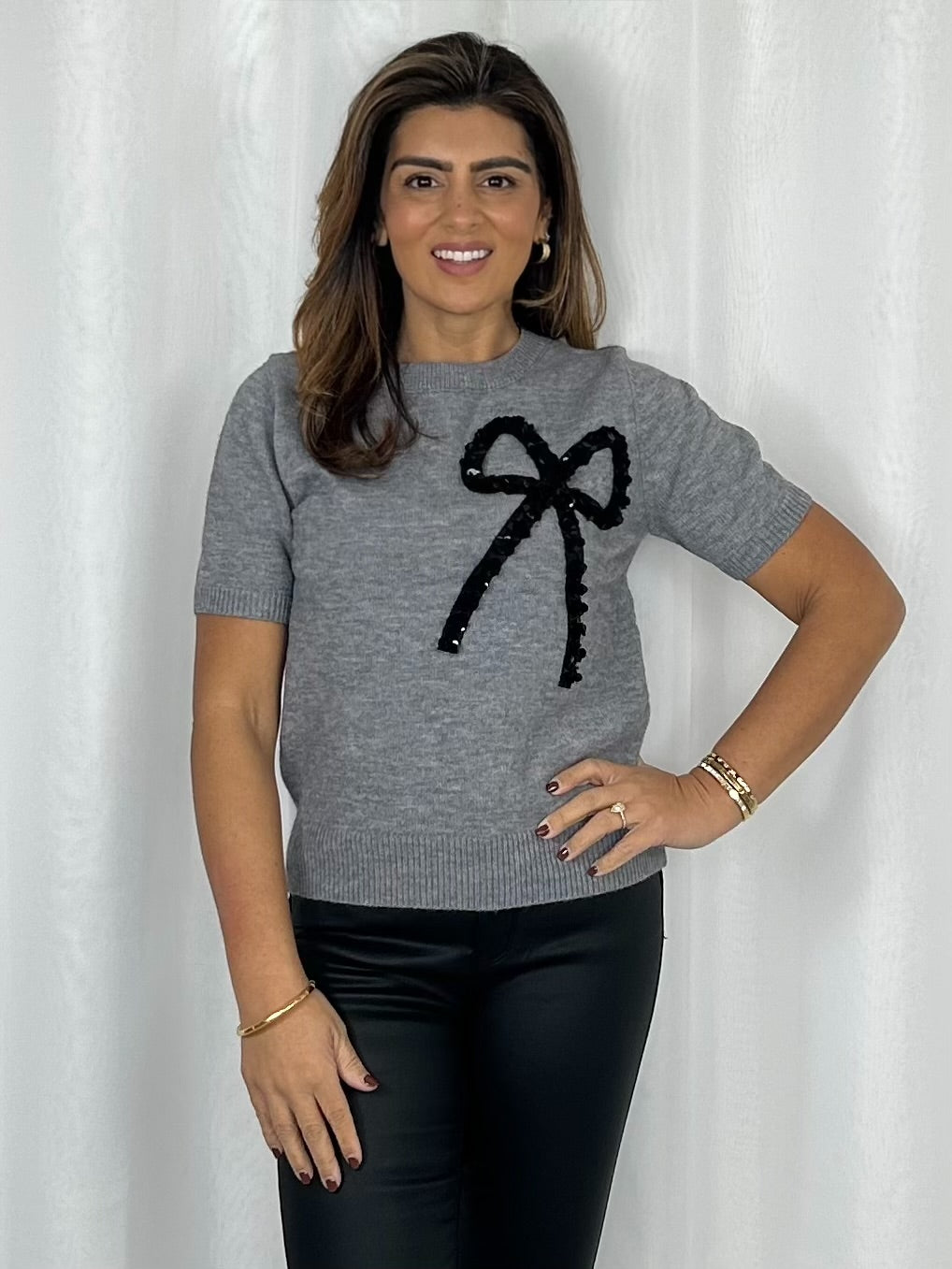 Soft Knit Short Sleeve Sequin Bow Jumper