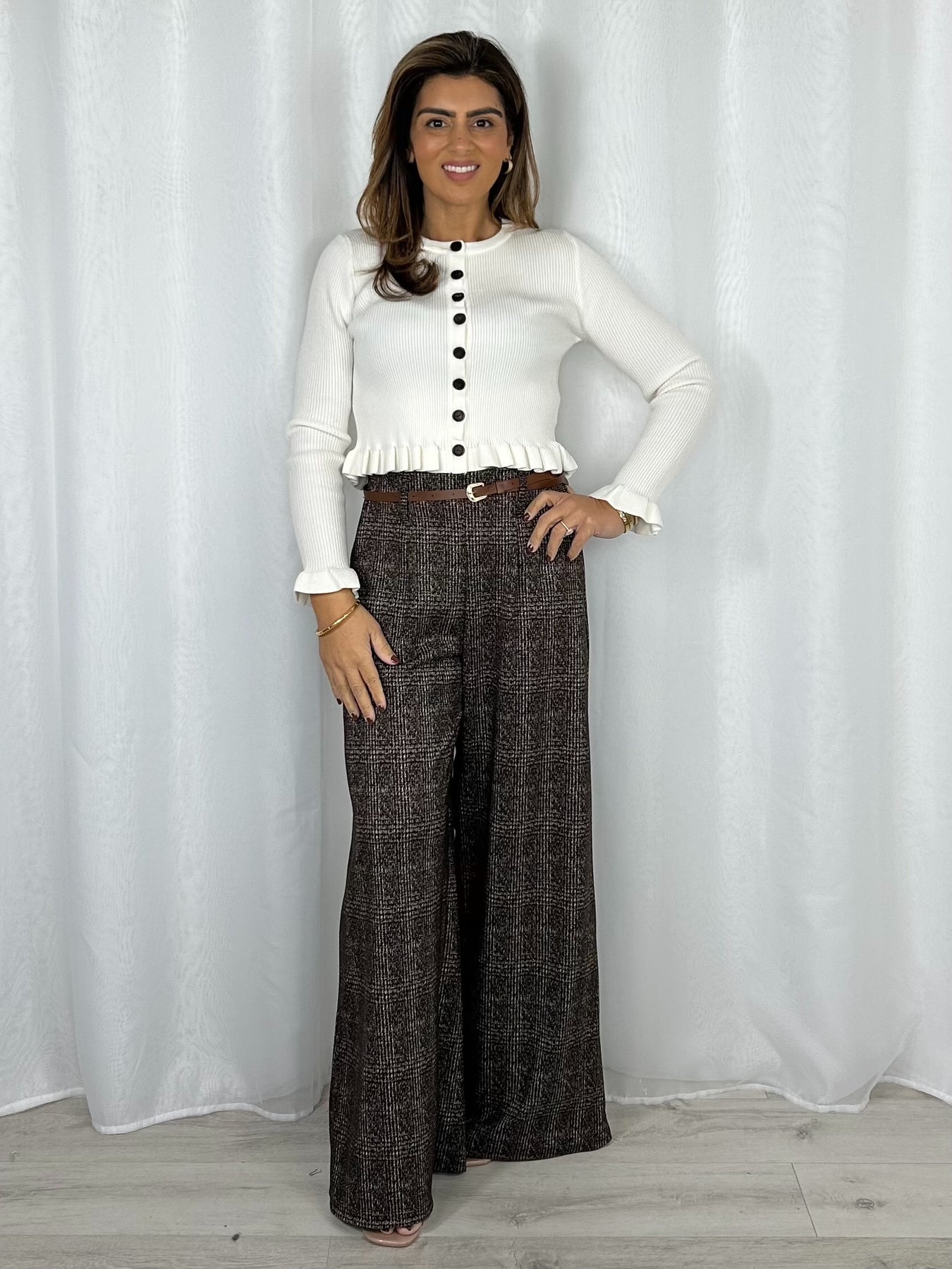 Wide Leg Woven Faux Leather Belted Trousers (2 Colours)